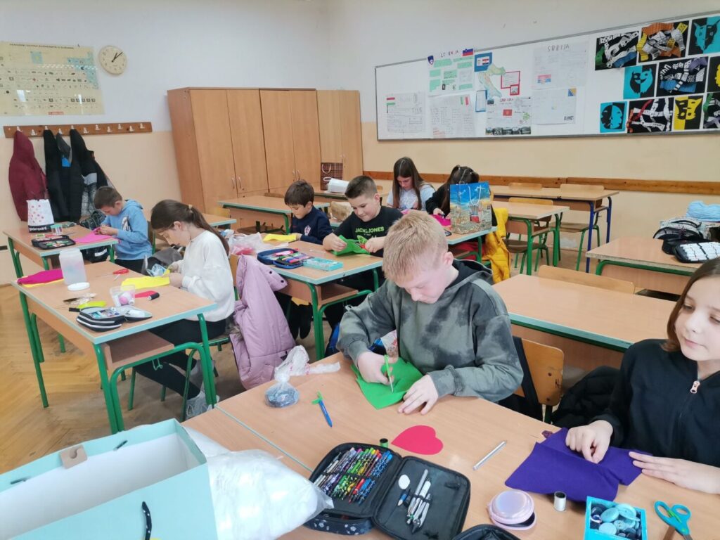 Veljača u školskoj knjižnici protječe u znaku ljubavi i knjige. Uspješno je završila naša akcija prikupljanja knjiga za kućicu za knjige te ovom prilikom zahvaljujemo svima koji su svojim darom obogatili kućicu i omogućili drugima da pronađu zanimljivu knjigu. Grupa mladih knjižničara napunila je kućicu novim naslovima i time smo obilježili Međunarodni dan darivanja knjiga, 14. veljače. S obzirom da toga dana obilježavamo i Valentinovo, učenici četvrtog razreda bili su posebno vrijedni. S iglom i koncem u rukama i puno dobre volje, izrađivali su privjeske od filca u obliku srca. Učenici trećeg razreda obilježili su Međunarodni dan čitanja naglas zajedno s prijateljima iz četvrtog razreda koji su im pripremili zanimljivi kviz znanja. Našim prvašima knjižničarka je, u sklopu projekta Svakog tjedna priča jedna, pročitala novu priču i objasnila koliko je važno vježbati čitanje, pogotovo naglas jer tako povezujemo ono što čujemo i vidimo te lakše razumijemo pročitano.