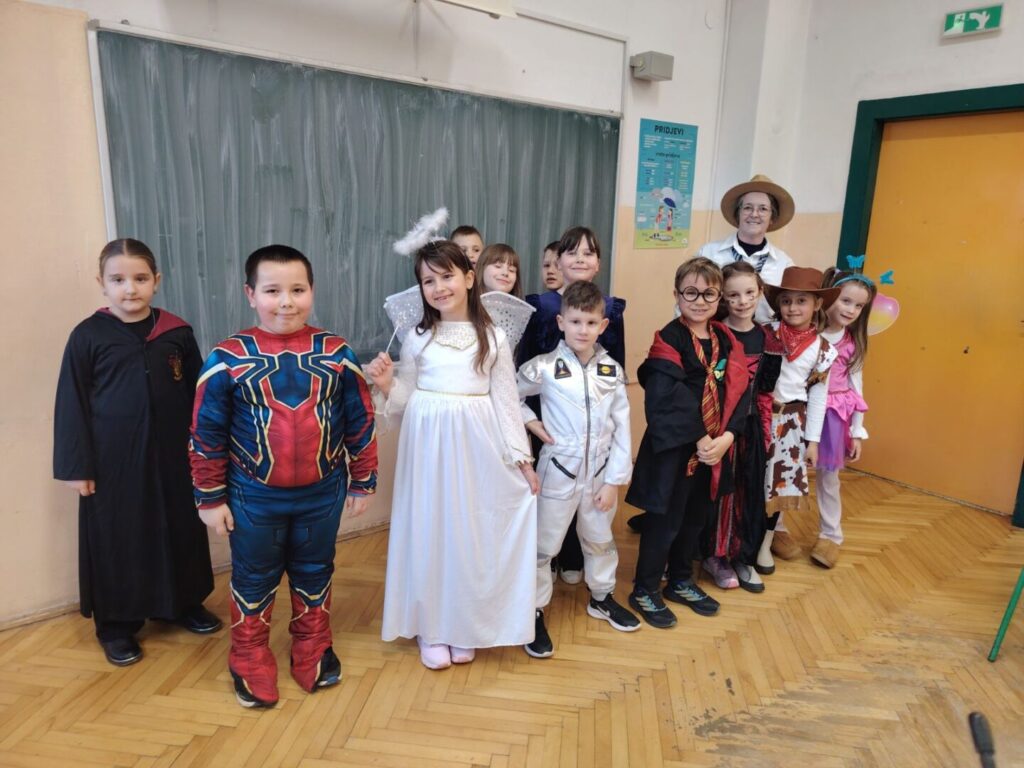 U našoj školi održan je dugo iščekivani maskenbal koji je ispunio hodnike smijehom, veseljem i šarenilom kostima. Učenici su pokazali veliku kreativnost – susreli smo princeze, superjunake, sportaše, životinje, likove iz bajki i još mnoga maštovita iznenađenja!